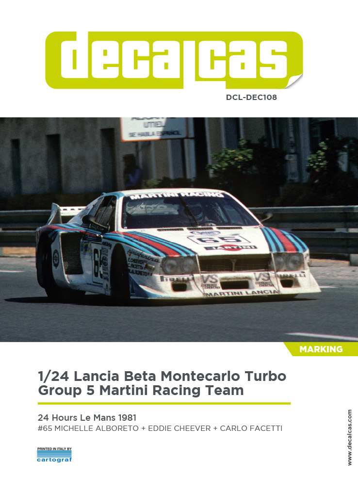 Marking / livery for 1/24 scale models: Lancia Beta Montecarlo Turbo Group 5 Team Martini Racing - 1981 (ref. DCL-DEC108)