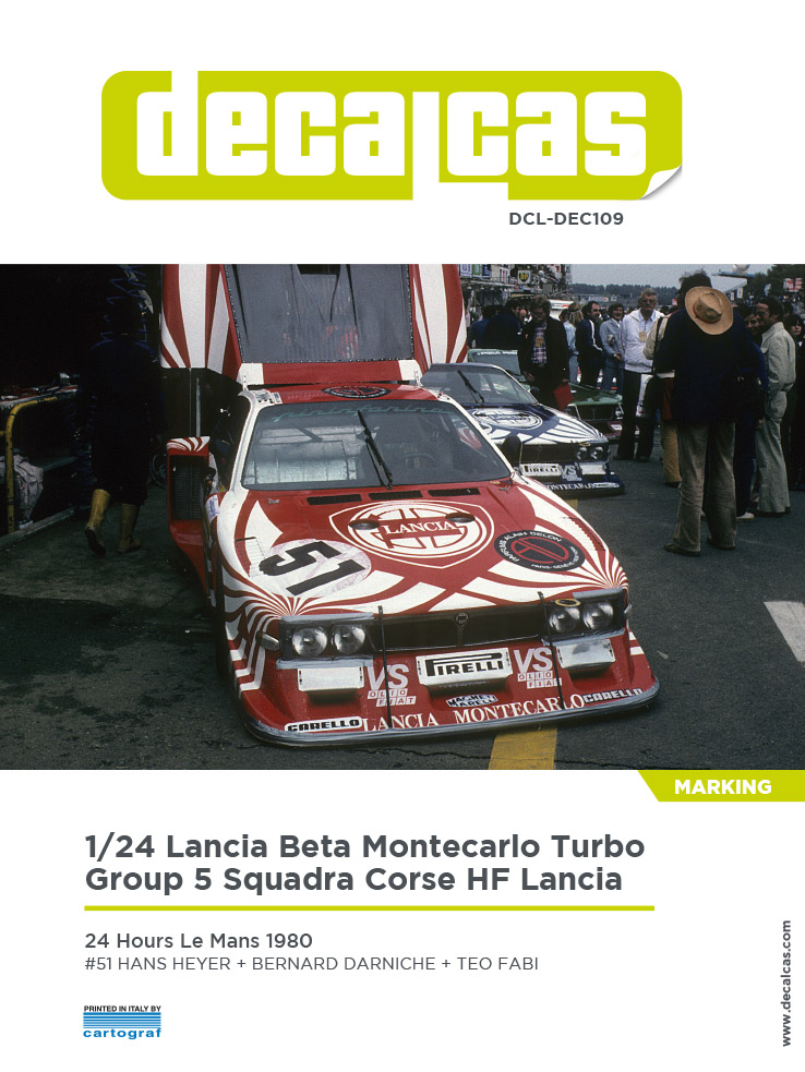 Marking / livery for 1/24 scale models: Lancia Beta Montecarlo Turbo Group 5 Team Squadra Corse HF Lancia - 1980 (ref. DCL-DEC109)