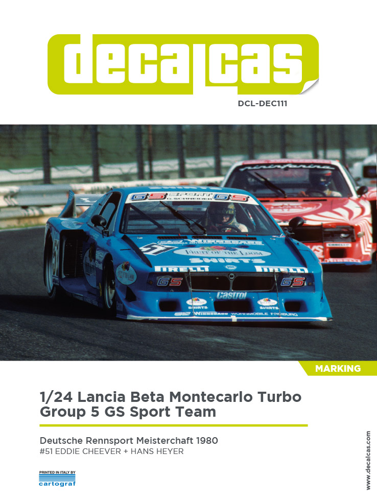 Marking / livery for 1/24 scale models: Lancia Beta Montecarlo Turbo Group 5 Team GS Sport sponsored by Fruit of the Loom - 1980 (ref. DCL-DEC111)