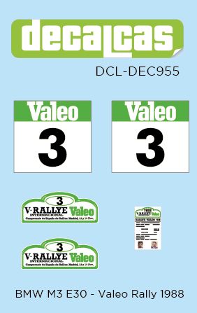 Decals with the numbers of the BMW M3 E30 in its participation in the Valeo Rally in 1988. This decal is complementary to the Decalcas decoration with reference