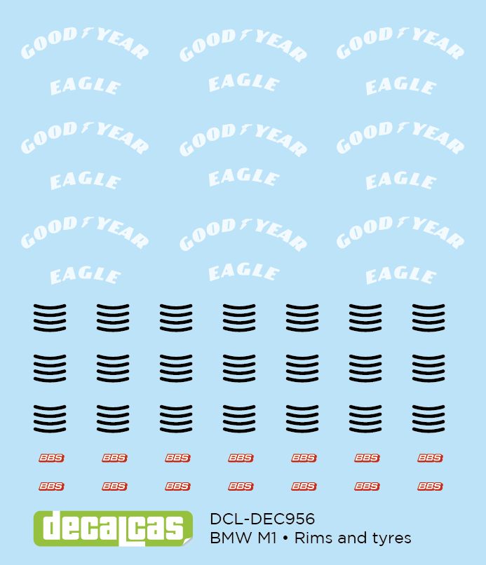 option of separately purchasing the decal sheet with the Goodyear logos for the tires, the BBS logos for the rims, and the decorative ones for the turbofans.
