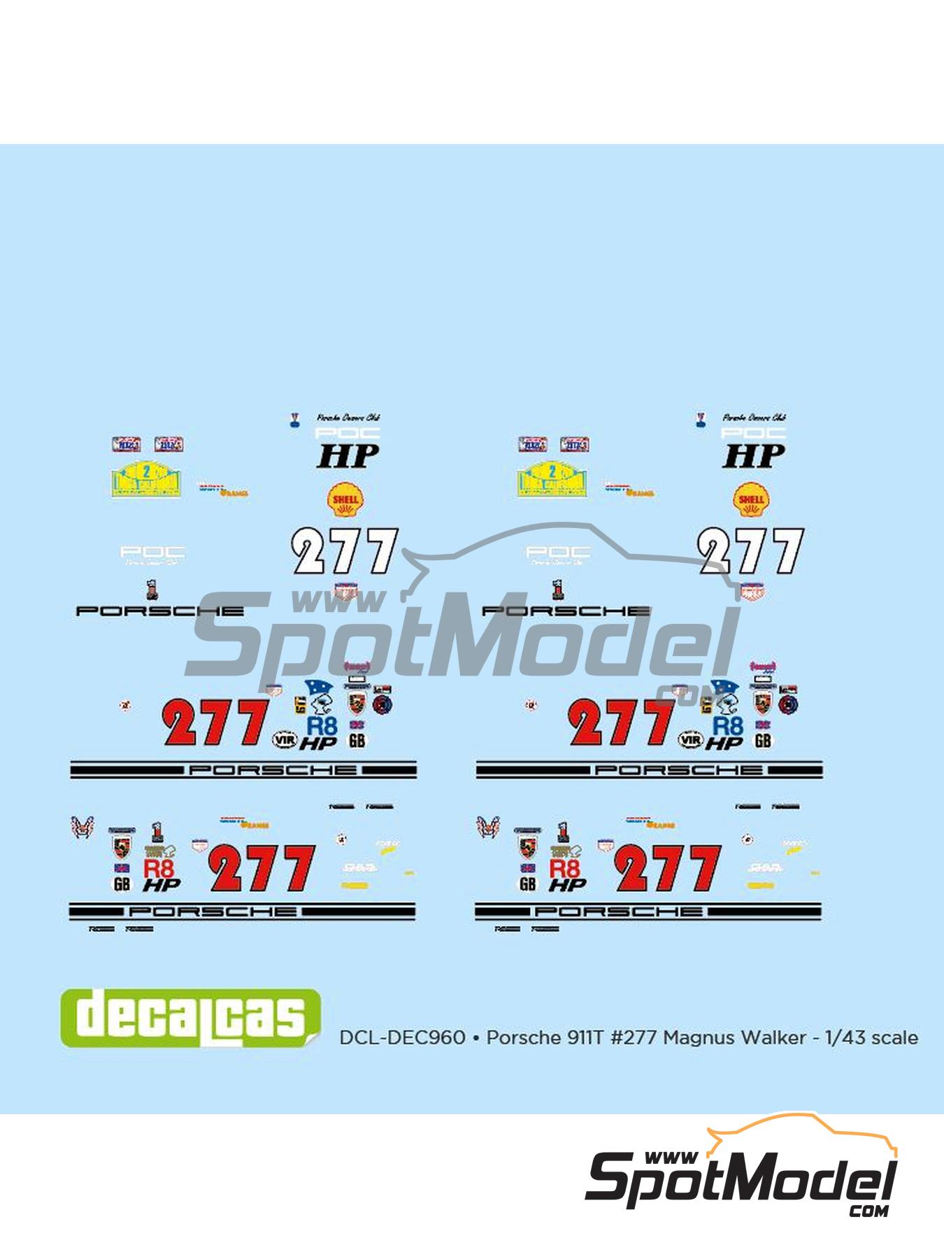 Decal sheet with the logos for recreating Magnus Walker's Porsche 911 T. The sheet includes the decoration in 1/43 scale so you can decorate your diecasts.
