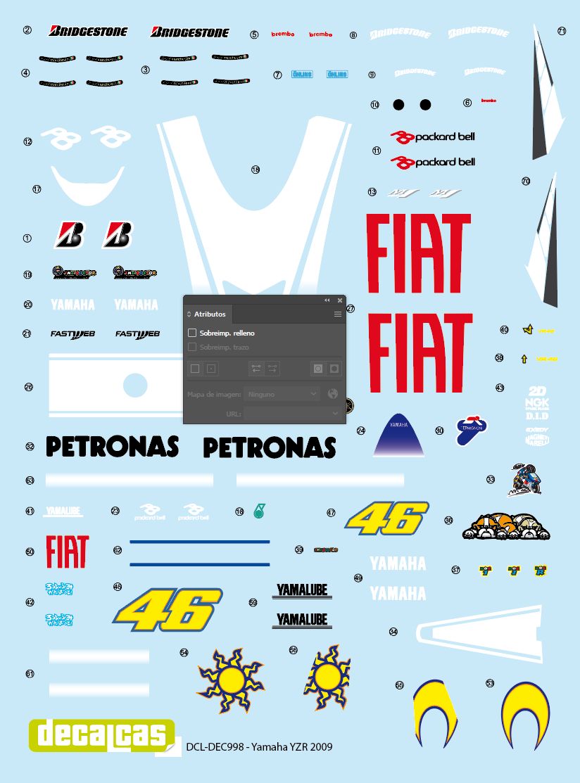 Marking / livery for 1/12 scale models: Yamaha YZR M1 - 2009 (ref. DCL-DEC998)