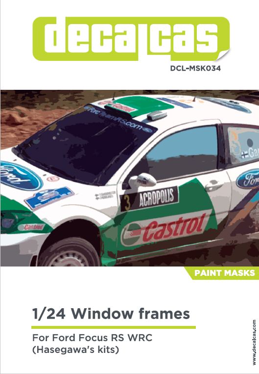 Guaranteed quality when painting the windows of Hasegawa's Ford Focus RS WRC kit with the pre-cut masks from Decalcas. Includes masks for the windows and front and rear windscreens. A complete success!