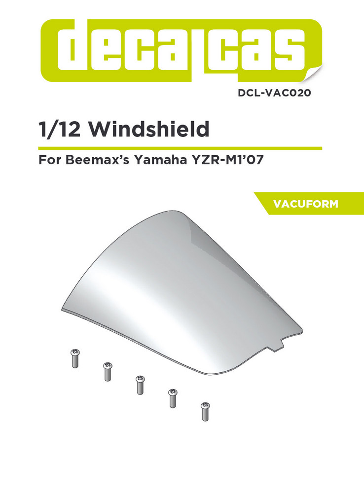 Fairing windshield and screws for the Beemax Yamaha YZR-M1 '07 scale model kit. The windshield is made of