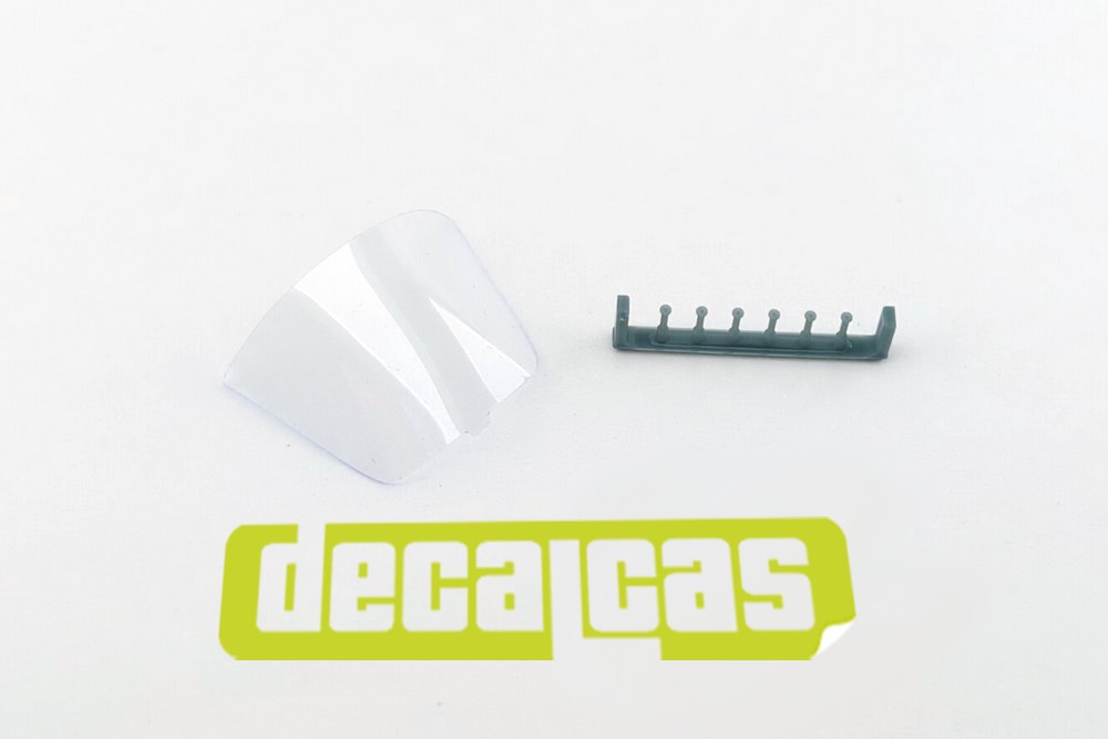 0.2mm thick laminated clear material, replacing the kit's clear plastic screen. The screws are 3D printed. This new windshield will enhance the realism of your model, thanks to its